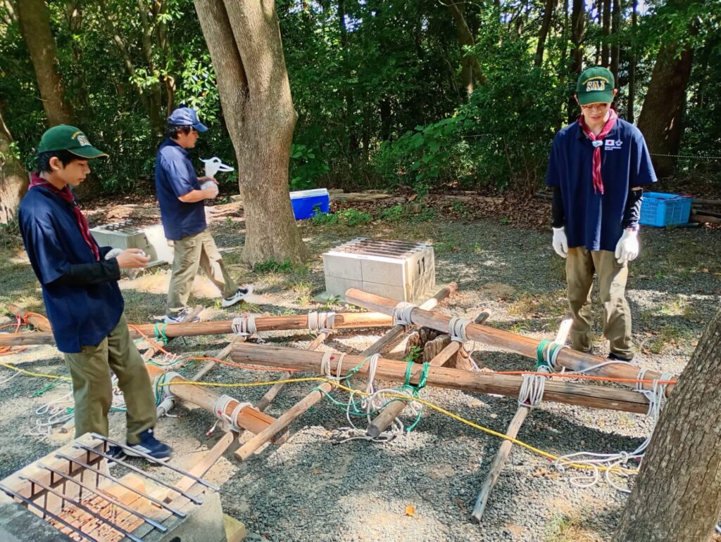 穂の国地区ボーイスカウト・ベンチャースカウトが野営管理章・パイオニアリング章の